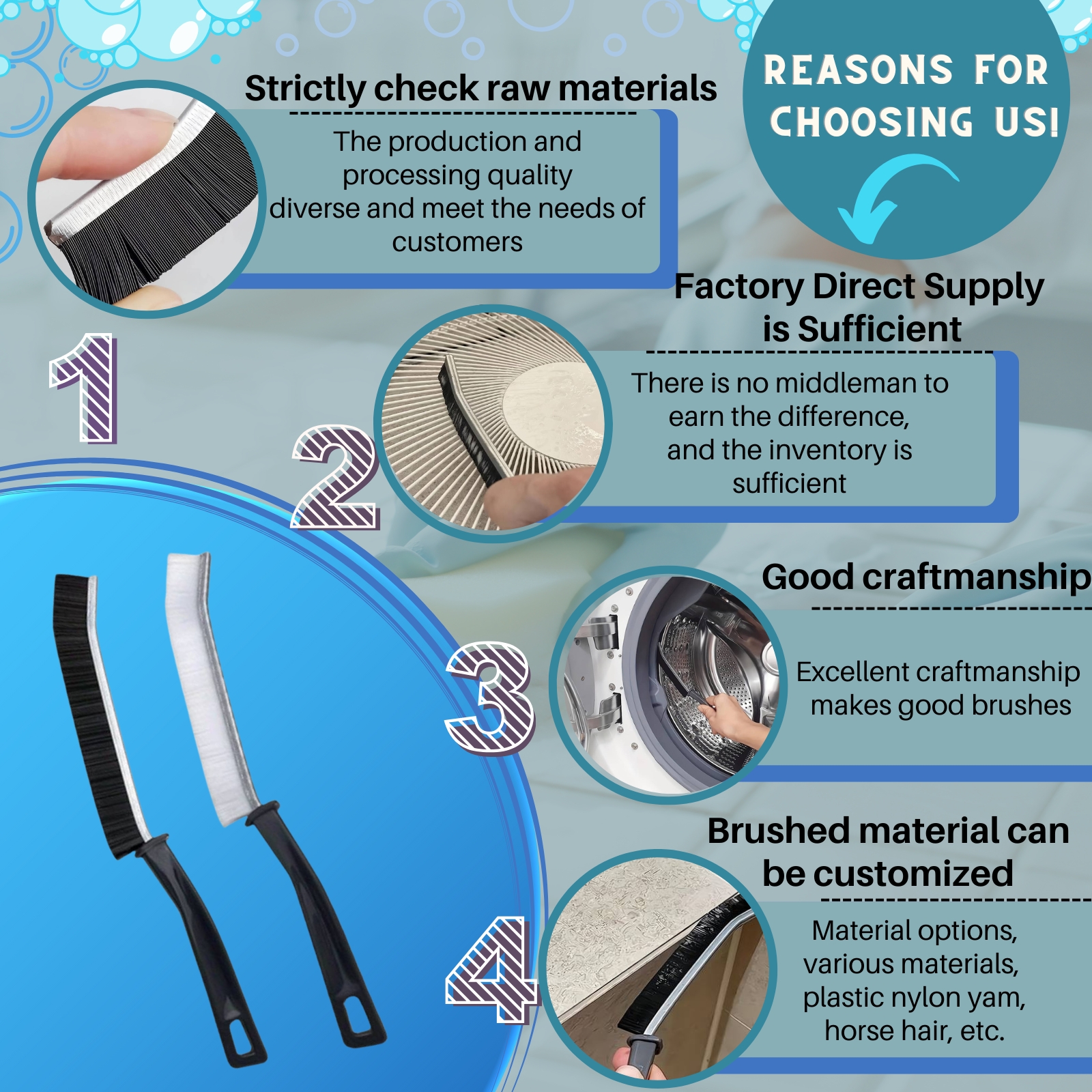 • Ergonomic brush handles provide a comfortable, secure grip
