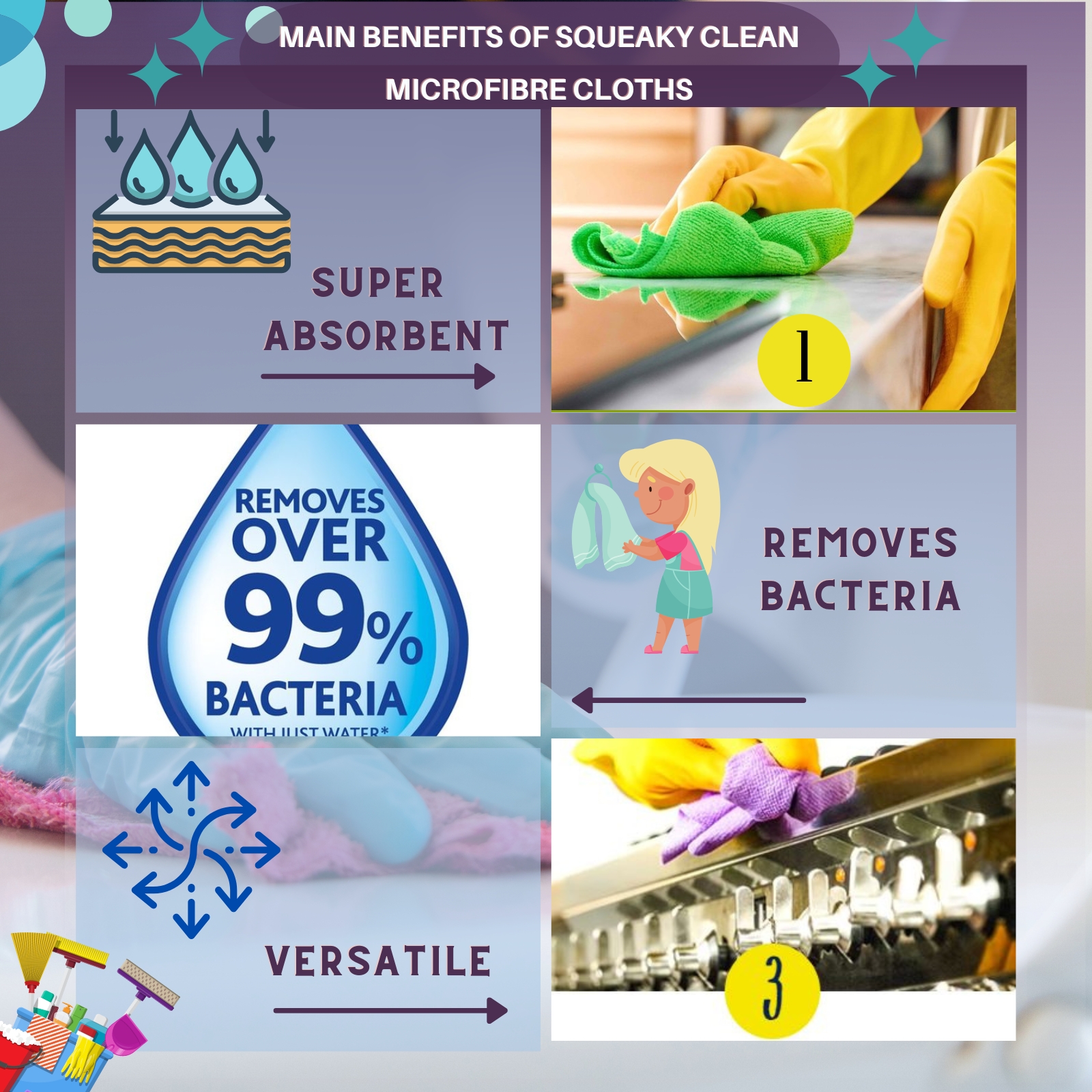 • Reusable and washable – durable tools for everyday cleaning tasks