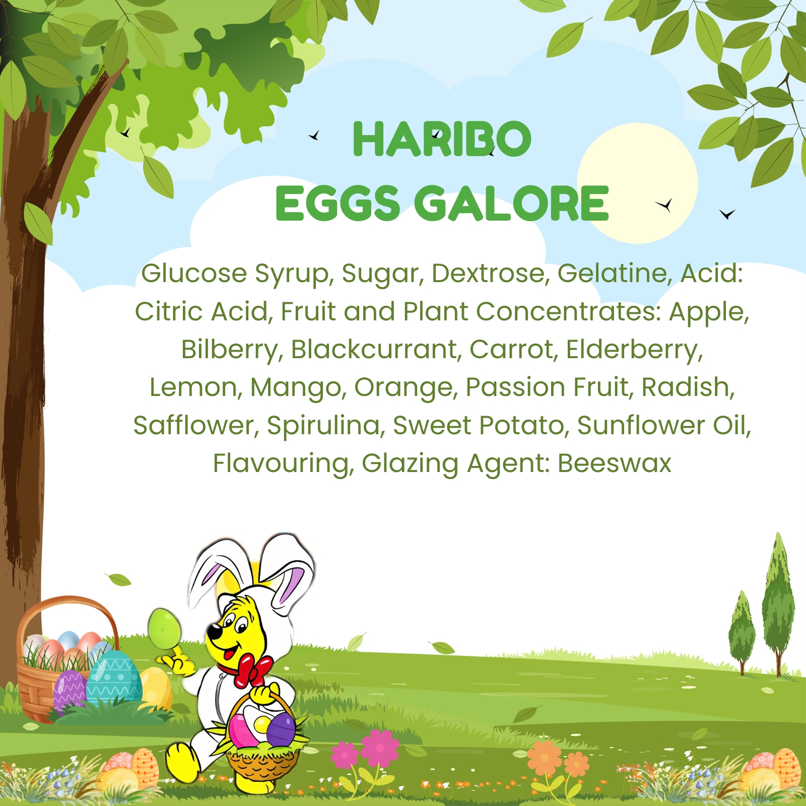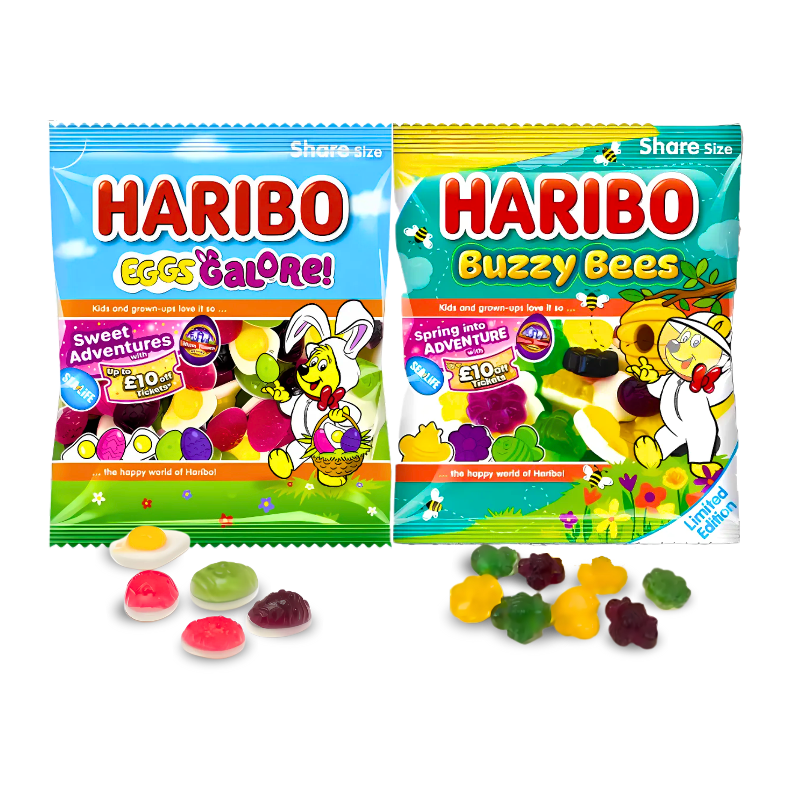 Includes 2 fun Haribo gummy packs: Eggs Galore and Buzzy Bees