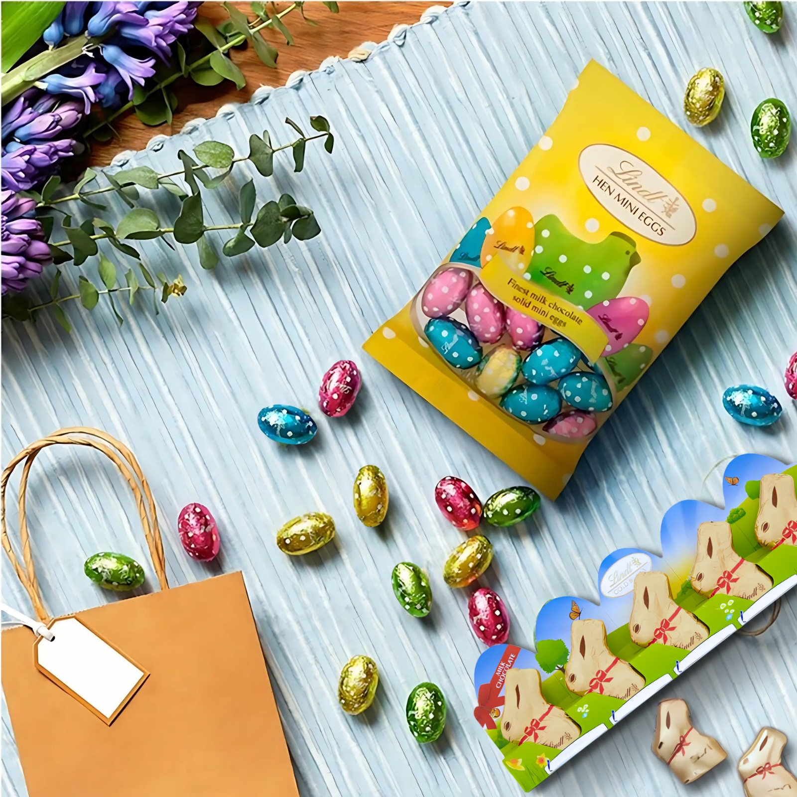 Lindt Hen Mini Eggs: Smooth, creamy milk chocolate eggs in colourful foil wrapping – perfect for Easter hunts and snacking