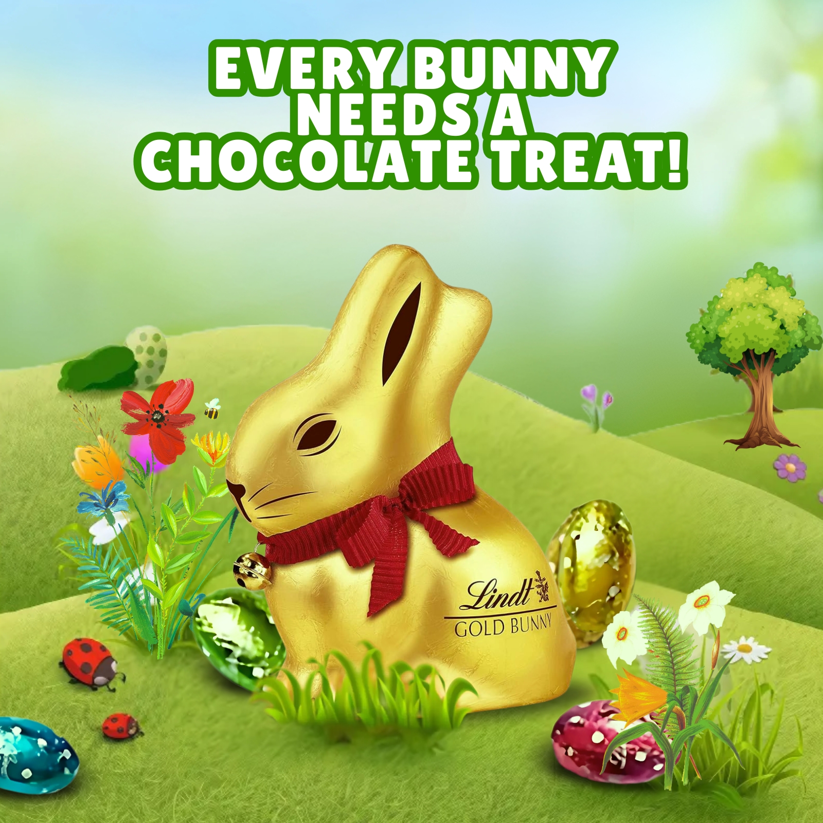 Includes a luxurious collection of Lindt Easter favourites: Lindt Hen Mini Eggs and the iconic Lindt Milk Chocolate Gold Bunny
