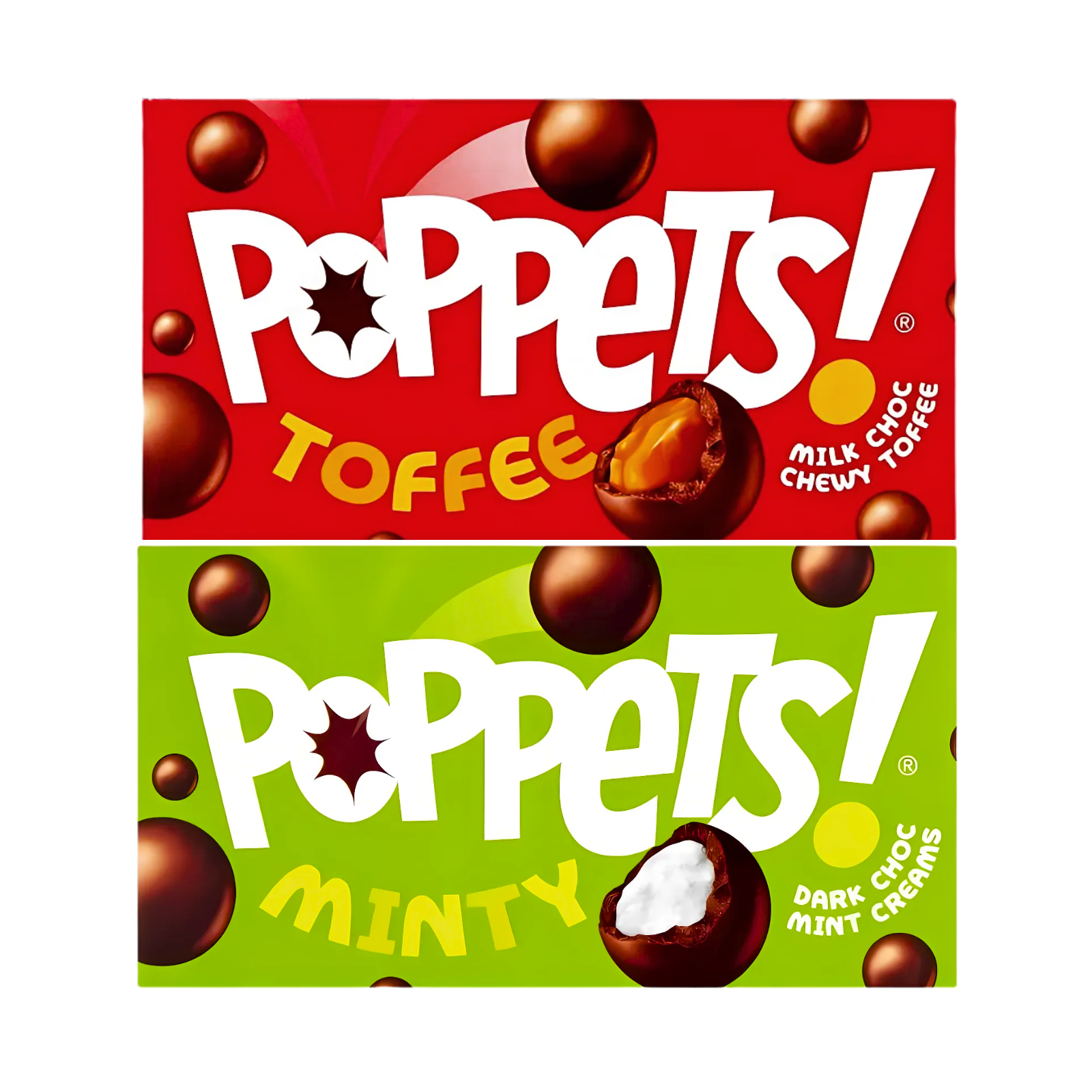 2X Poppets Toffee And Minty Chocolate Balls