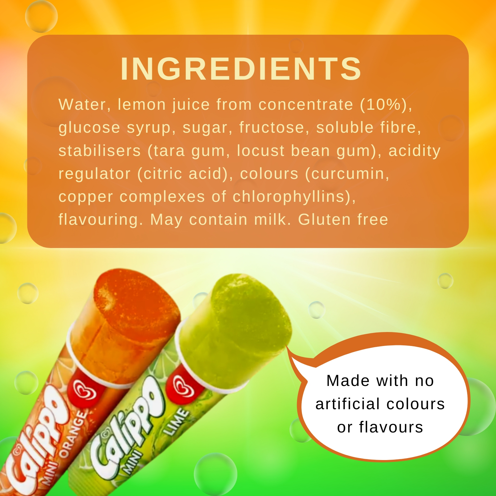 Mini push-up ice sorbets in fruity flavours like orange, strawberry, and cola