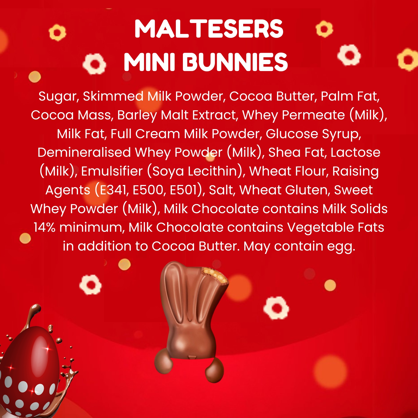 White Chocolate Bunnies: Creamy white chocolate paired with the light Maltesers crunch
