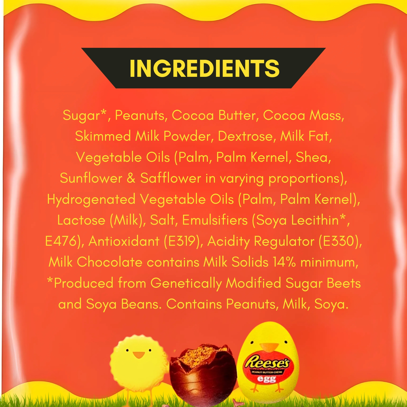 Smooth milk chocolate eggs filled with rich Reese’s peanut butter crème