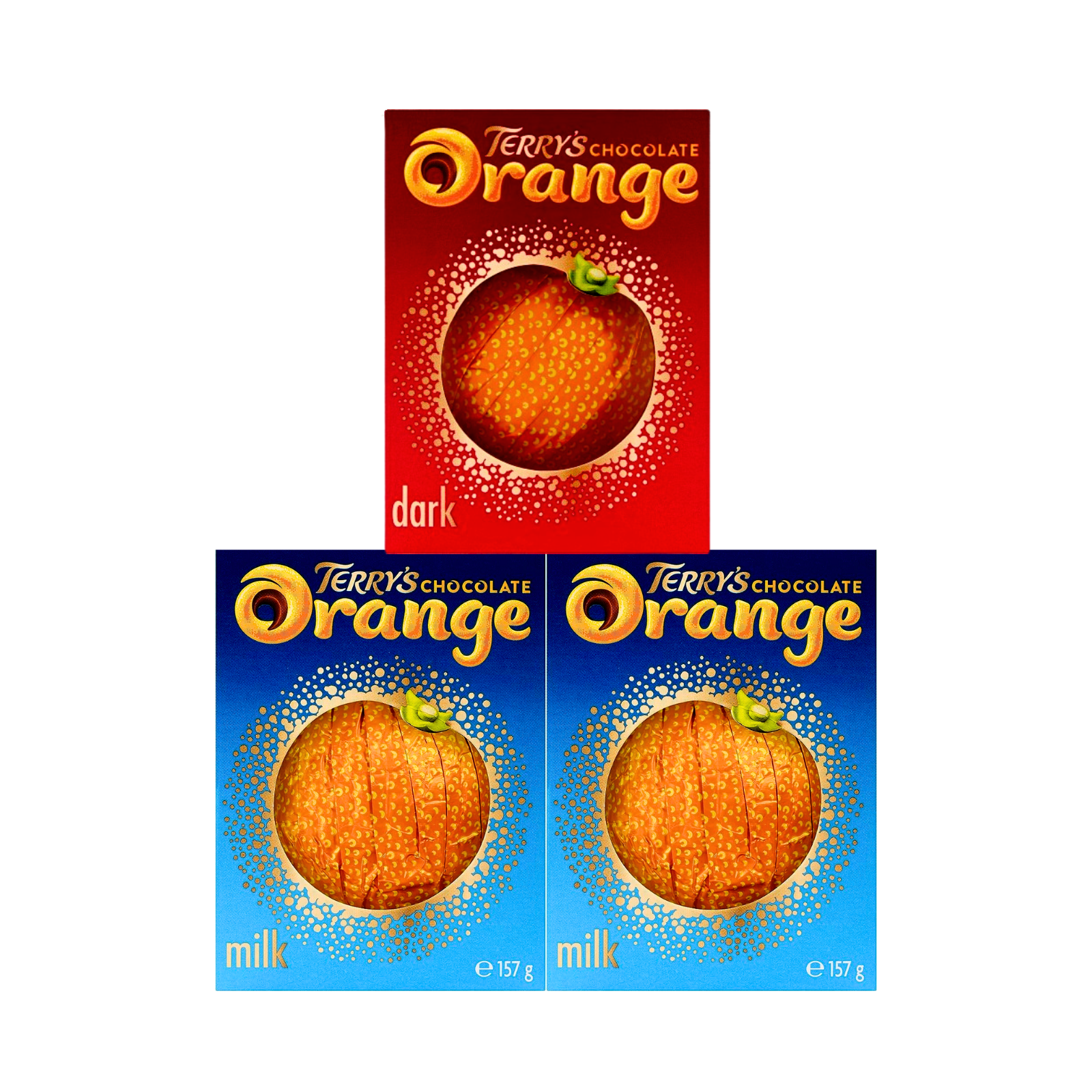 A delicious pairing of Terry’s Chocolate Orange in Milk and Dark chocolate varieties