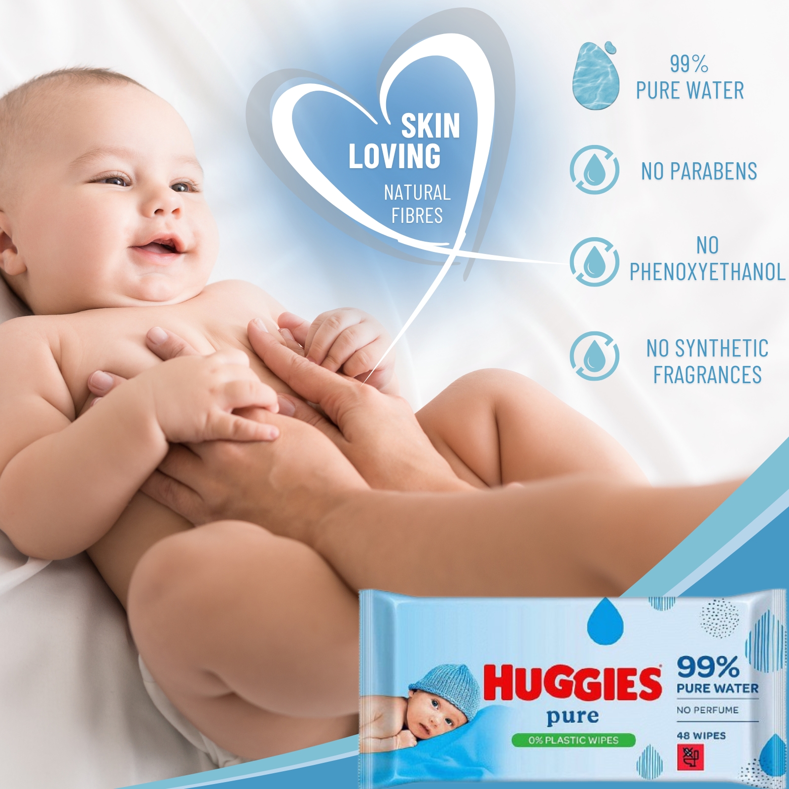 Huggies Pure Wipes – fragrance-free and suitable for newborns’ delicate skin