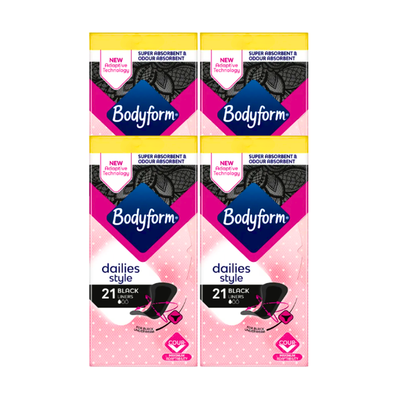 Be the first to review “4X Bodyform Dailies Style Normal Panty Liners Black 21 Count” Cancel reply