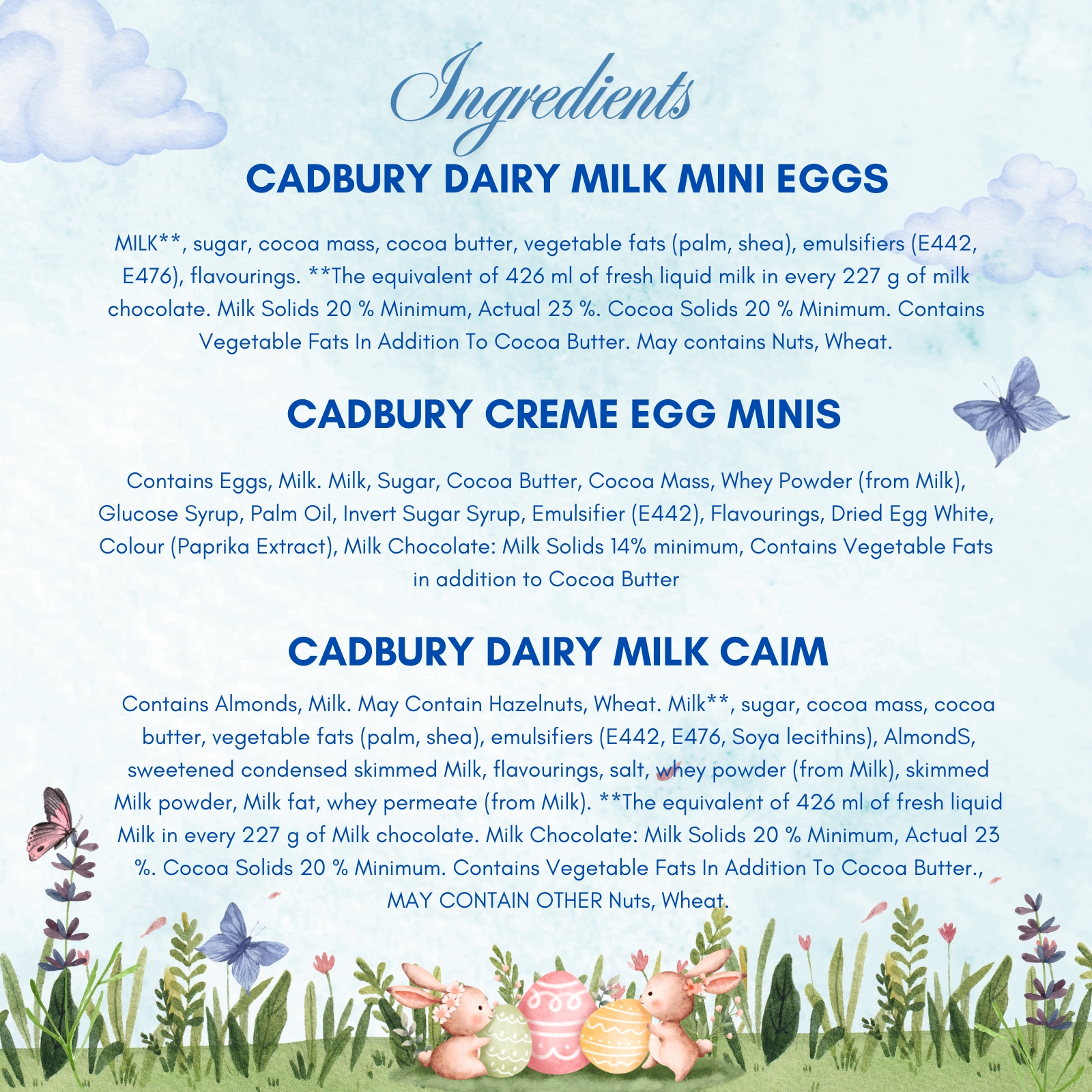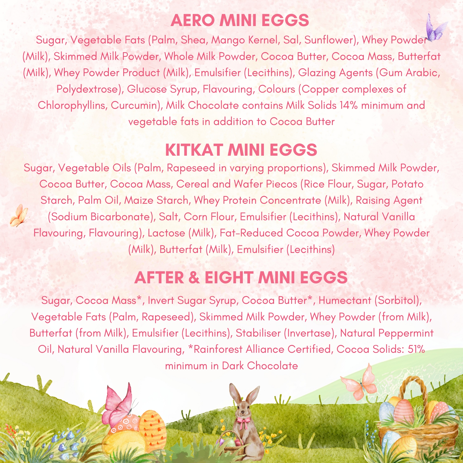 Includes a generous bag of assorted mini eggs from top chocolate brands
