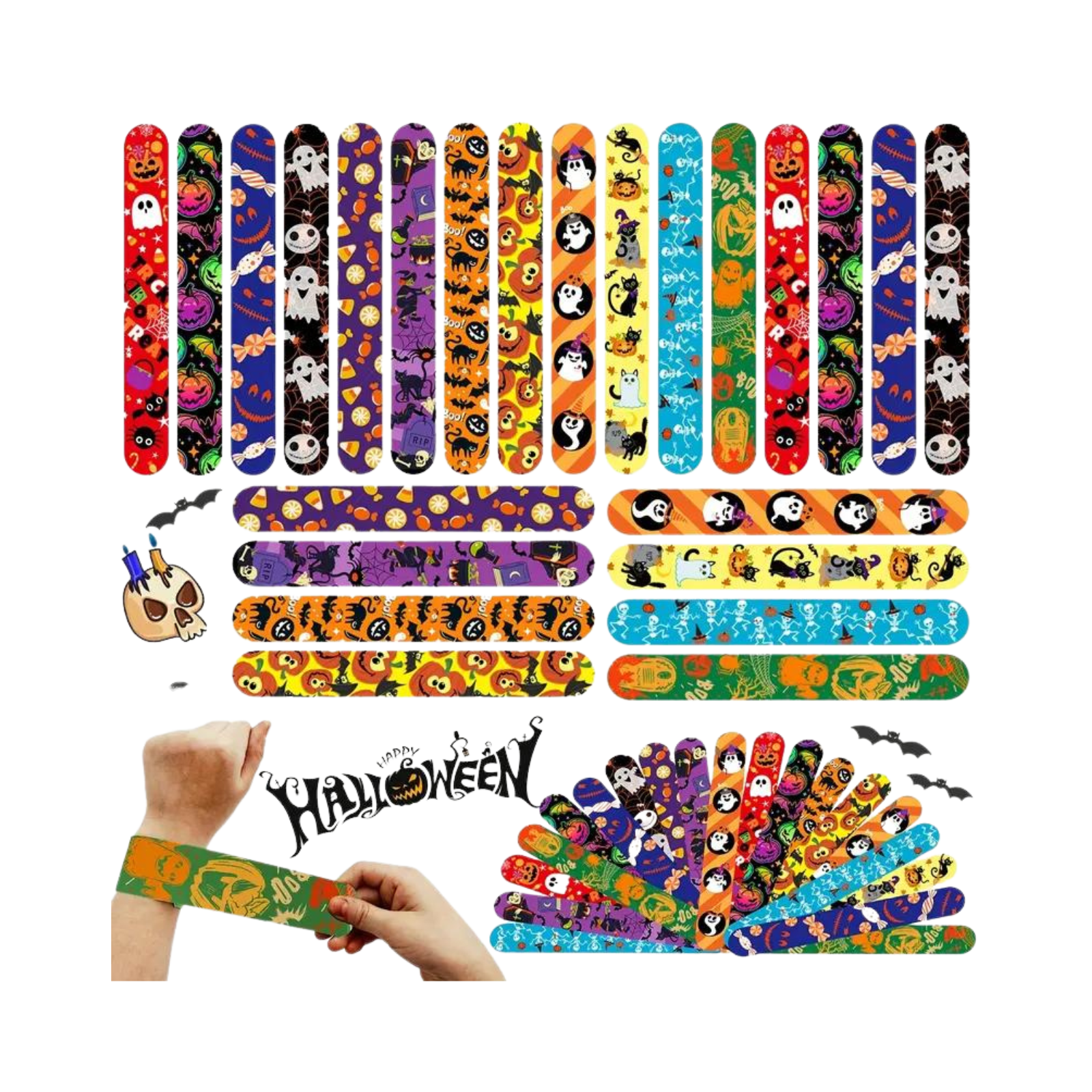 • Features assorted styles such as pumpkins, ghosts, bats, spiders, and more