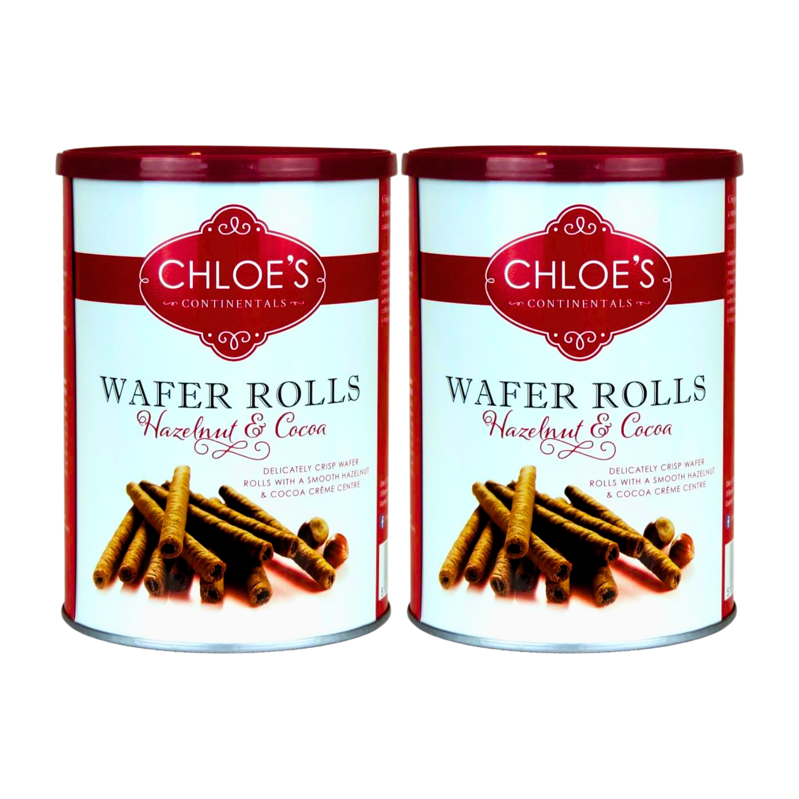 2 Tin of Chloe’s Continental Wafer Rolls Hazelnut & Cocoa 400g