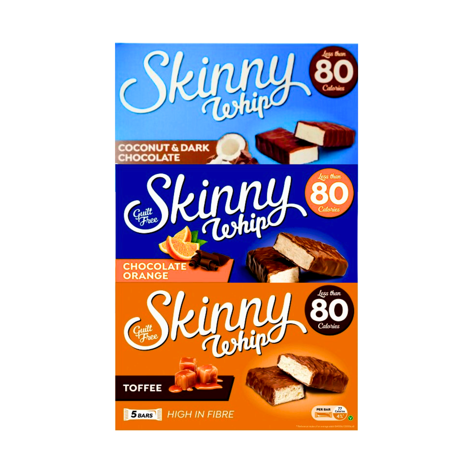 Skinny Bars Coconut, Chocolate Orange, Toffee